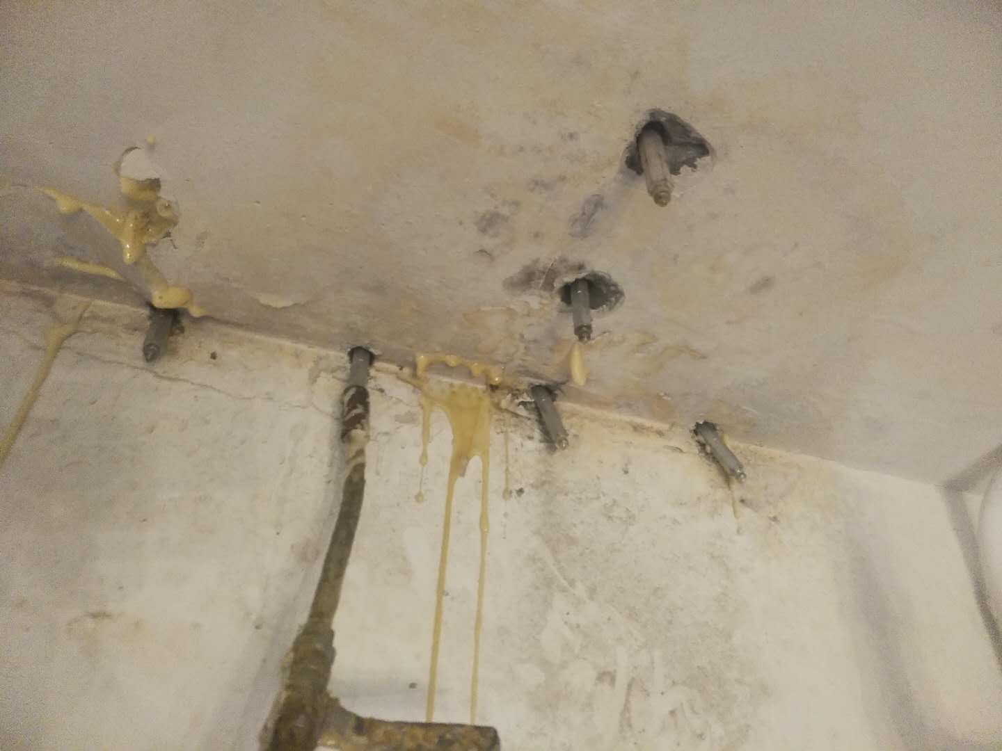 以下是對(duì)各具體工序的詳細(xì)梳理: ### 1. 查找裂縫、滲漏點(diǎn) - **裂縫產(chǎn)生原因**:主要源于變形作用,像溫度變形、收縮變形、基礎(chǔ)不均勻沉降變形等多因素。滲漏通常是由混凝土裂縫或混凝土密實(shí)度問題導(dǎo)致。 - **查找方法**:出現(xiàn)滲漏水的地方,其混凝土表面往往附有水堿痕跡,據(jù)此找準(zhǔn)裂縫和滲漏水的具體點(diǎn)位。 ### 2. 鉆機(jī)打孔 - **打孔時(shí)機(jī)**:在完成查找裂縫、滲漏點(diǎn)的施工流程后進(jìn)行。 - **打孔要求**:對(duì)準(zhǔn)裂縫縫隙以90°垂直混凝土表面打進(jìn)直孔(特殊部位或情況如建筑物陰角部位、施工部位聚集較多鋼筋等,可能改變打孔方法);在裂縫走向每隔15 - 20cm間距布一個(gè)鉆孔,孔深度為25 - 40cm(孔深一般不宜小于1/3的建筑物截面深度,不宜大于2/3的建筑物截面深度)。若鉆孔時(shí)遇到鋼筋無法達(dá)到要求孔深,宜在旁邊部位補(bǔ)孔。 ### 3. 安裝止水針頭 控制好埋設(shè)針頭的深度(便于后續(xù)敲釘、堵孔、打磨等操作),安裝好注射針頭并擰緊。 ### 4. 檢測(cè)灌漿機(jī) - **檢測(cè)內(nèi)容**:檢查灌漿機(jī)構(gòu)件、高壓管、牛油頭等是否正常,保證料斗清潔;將灌漿機(jī)通電,用清洗劑進(jìn)行清洗,查看是否存在異常現(xiàn)象。 - **后續(xù)操作**:確保正常后才可進(jìn)入下一道工序。 ### 5. 按比例配漿液 - **配液要求**:認(rèn)真閱讀材料使用說明書,按漿液配比要求進(jìn)行漿液配比(注意用刻度量杯量度,先配甲組份后配乙組份),平穩(wěn)緩慢倒進(jìn)灌漿機(jī)料斗,用木棒緩慢有序攪拌,直至液體色澤均勻、無分層即可進(jìn)行灌漿。 - **注意事項(xiàng)**:根據(jù)現(xiàn)場(chǎng)施工進(jìn)展配漿液,量少次多,避免一次配過多造成浪費(fèi);配好的漿液要在初凝時(shí)間內(nèi)完成使用,防止機(jī)器堵塞和漿液浪費(fèi)。 ### 6. 進(jìn)行注漿 - **注漿對(duì)接**:用牛油頭對(duì)接好止水針頭,開始正常灌漿。 - **灌漿方式**:不宜持久性灌漿,應(yīng)間斷性、有序性、有要求、有標(biāo)準(zhǔn)地施工。首先以不大于400kg/cm³d的低壓進(jìn)行慢灌,然后再以600kg/cm³左右的高壓進(jìn)行滿灌,注漿壓力控制在0.3Mpa。觀察到止水針口附近的混凝土表面出現(xiàn)溢漿即可停止灌注。同時(shí)在灌漿過程中要做到眼勤、口勤、手勤,掌握好漿液凝固時(shí)間,在有效時(shí)間內(nèi)完成所有注漿施工動(dòng)作,并在初凝時(shí)間內(nèi)完成灌注。 ### 7. 清洗注漿機(jī)械 采用優(yōu)質(zhì)的洗滌液清洗,先使用少量洗滌液清洗機(jī)內(nèi)的環(huán)氧,然后進(jìn)行循環(huán)洗滌直至干凈,清洗后將灌漿機(jī)部分卸除保管。 ### 8. 質(zhì)量檢測(cè) 過完材料的最終凝固時(shí)間,質(zhì)檢人員到現(xiàn)場(chǎng)進(jìn)行質(zhì)量評(píng)估。 ### 9. 敲釘、堵孔、打磨、恢復(fù)原狀 灌漿后,待縫內(nèi)漿液不外流且完全凝固,拔卸灌漿嘴,使用環(huán)氧樹脂砂漿對(duì)灌漿孔封孔,抹平修復(fù)裂縫表面,再根據(jù)現(xiàn)場(chǎng)施工要求進(jìn)行打磨修復(fù)。 ### 10. 驗(yàn)收、撤場(chǎng) - **驗(yàn)收工作**:通知報(bào)驗(yàn),組織甲方人員、乙方人員驗(yàn)收計(jì)量。 - **撤場(chǎng)工作**:清理施工現(xiàn)場(chǎng),做好撤場(chǎng)相關(guān)事宜。